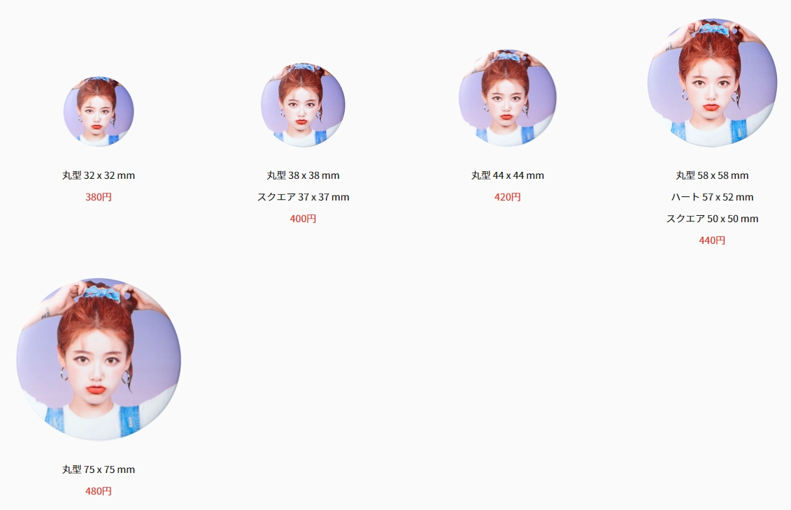 5つのサイズと3つの形でカバンに合った缶バッチを選択できます。